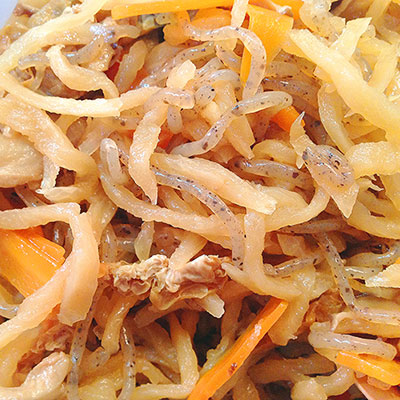 人参・ごぼう・たけのこなど、大地の養分をたっぷり含んだ根菜類を、椎茸やこんにゃくと長時間煮込みました